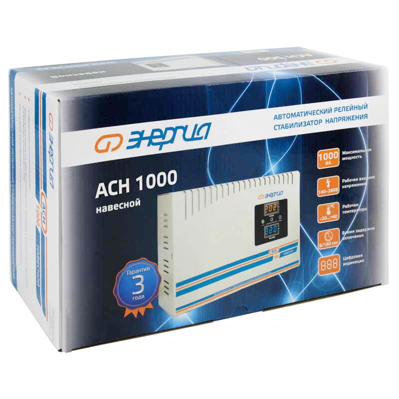 Отличительной чертой стабилизаторов напряжения серии Энергия АСН является их температурный диапазон работы (от -20°C до +40°С), это позволяет эксплуатировать их в неотапливаемых помещаениях, а так же включать во время осенних и весенних заморозков без предварительного прогрева. Стабилизатор имеет современное микропроцессорное управление силовым блоком и многоступенчатую систему защиты. В силовом блоке применяется технология плавного старта и программирумая задержка включения, что позволяет надежно защитить технику с двигателями (холодильники, насосы, инструмент и т.д.) от скачков во время отключения и подачи электроснабжения. А система поглощения электрической дуги и технология "Current zero cross control" (переключение в нулевой точке), обеспечивают отсутвие искажений в синусоиде переменного напряжения.