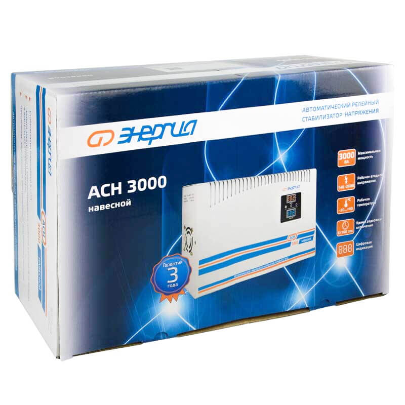 Отличительной чертой стабилизаторов напряжения серии Энергия АСН является их температурный диапазон работы (от -20°C до +40°С), это позволяет эксплуатировать их в неотапливаемых помещаениях, а так же включать во время осенних и весенних заморозков без предварительного прогрева. Стабилизатор имеет современное микропроцессорное управление силовым блоком и многоступенчатую систему защиты. В силовом блоке применяется технология плавного старта и программирумая задержка включения, что позволяет надежно защитить технику с двигателями (холодильники, насосы, инструмент и т.д.) от скачков во время отключения и подачи электроснабжения. А система поглощения электрической дуги и технология "Current zero cross control" (переключение в нулевой точке), обеспечивают отсутвие искажений в синусоиде переменного напряжения.