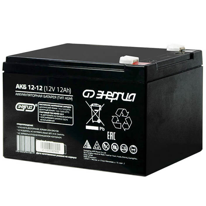 Аккумулятор Энергия АКБ 12-12 выполнен по технологии AGM с использованием материалов высокой чистоты, что обеспечивает великолепные разрядные характеристики и заметно продлевает срок службы аккумулятора. Корпус батареи изготовлен из высококачественного ударопрочного пропилена, имеющего повышенную устройчивость к воздействию агрессивных химических реагентов и механическим воздействиям. Прочный, безопасный и герметичный корпус аккумулятора позволяет использовать его в жилых помещениях и в условиях перепада температур.