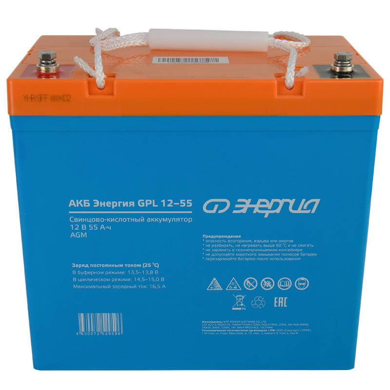 Продолжительный срок службы (12 лет), улучшенные зарядные характеристики, абсолютная герметизация корпуса и привлекательная цена выгодно отличают аккумулятор Энергия АКБ GPL 12-55 и делают его оптимальным по соотношению цена/качество при выборе аккумулятора для ИБП.