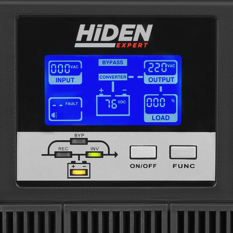 Hiden Expert UDC9201H-24 оснащен интеллектуальной системой управления батерями и трехступенчатой системой заряда, продлевающей срок службы аккумуляторов. ИБП имеет сквозную нейтраль и может использоваться для питания фазозависмых газовых котлов. ИБП имеет компактное исполнение, оснащен панелью управления с ЖК-дисплеем. Внешние аккумуляторы для ИБП выбираются исходя из требуемого времени автономной работы. Их число должно быть кратно двум.