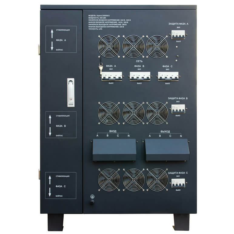 | Мощность стабилизатора | 200 кВA (150…200 кВт) |