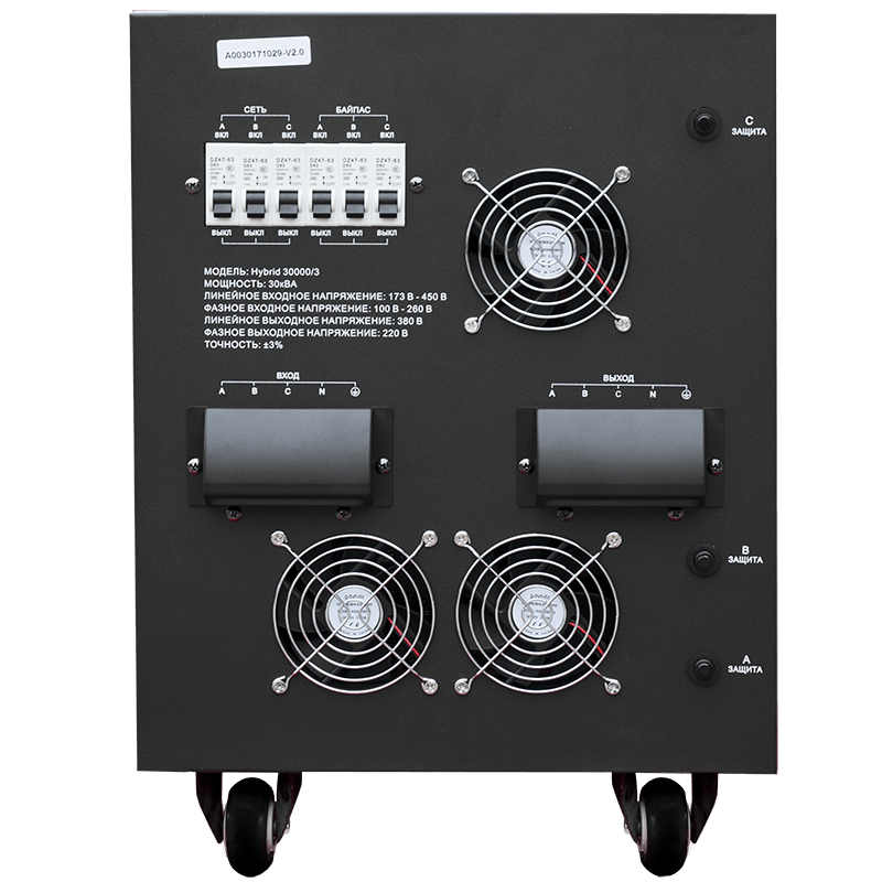 | Напряжение выхода, В | 380 ± 3% / 220 ± 3% |