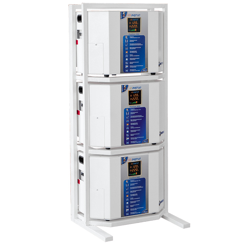 Коммутационная стойка Энергия 106-45-25 предназначена для размещения и подключения настенных стабилизаторов напряжения Энергия Premium мощностью 5, 7.5, 9 и 12кВА к трехфазной сети. Стойка максимально адаптирована к данным стабилизаторам по размерам и дизайну. Использование стойки упрощает электромонтаж комплекта стабилизаторов и позволяет минимизировать занимаемую площадь, за счет расположения стабилизаторов друг над другом. При этом остается открытый доступ ко всем элементам управления и коммутационным блокам стабилизаторов, а так же не нарушается режим вентиляции.