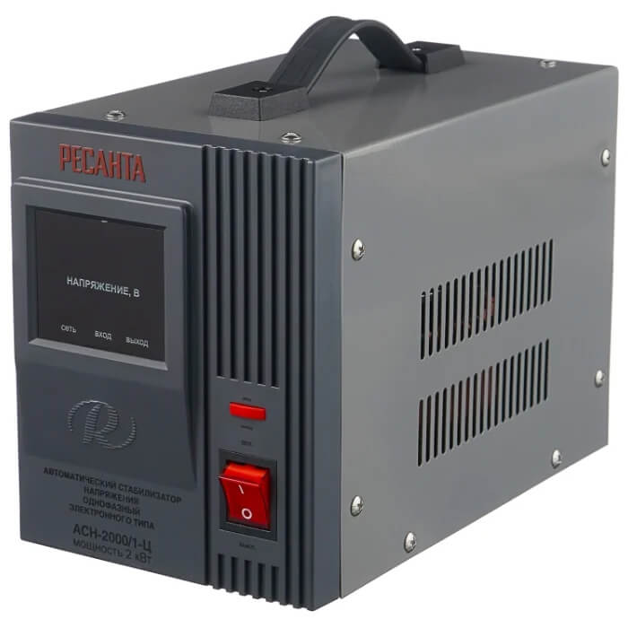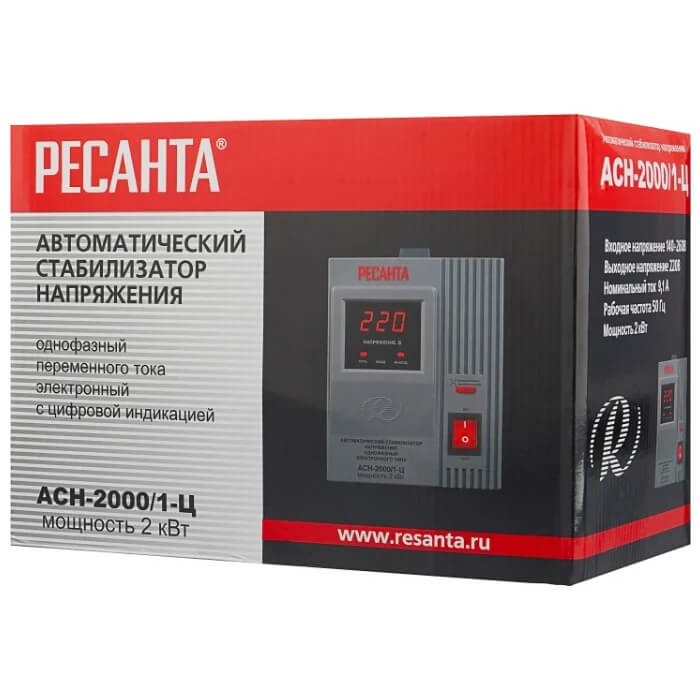 Стабилизатор Ресанта АСН-2000/1-Ц предназначен для выравнивания входного напряжения и защиты приборов от перепадов напряжения с суммарной мощностью до 2 кВт. Стабилизатор оснащен фильтрами сетевых помех, предотвращающими искажение частотной синусоиды, микропроцессорным управлением и цифровым индикатором напряжения, на котором отображаются текущие параметры напряжения. Прочный корпус защищает внутренние узлы аппарата от повреждений.