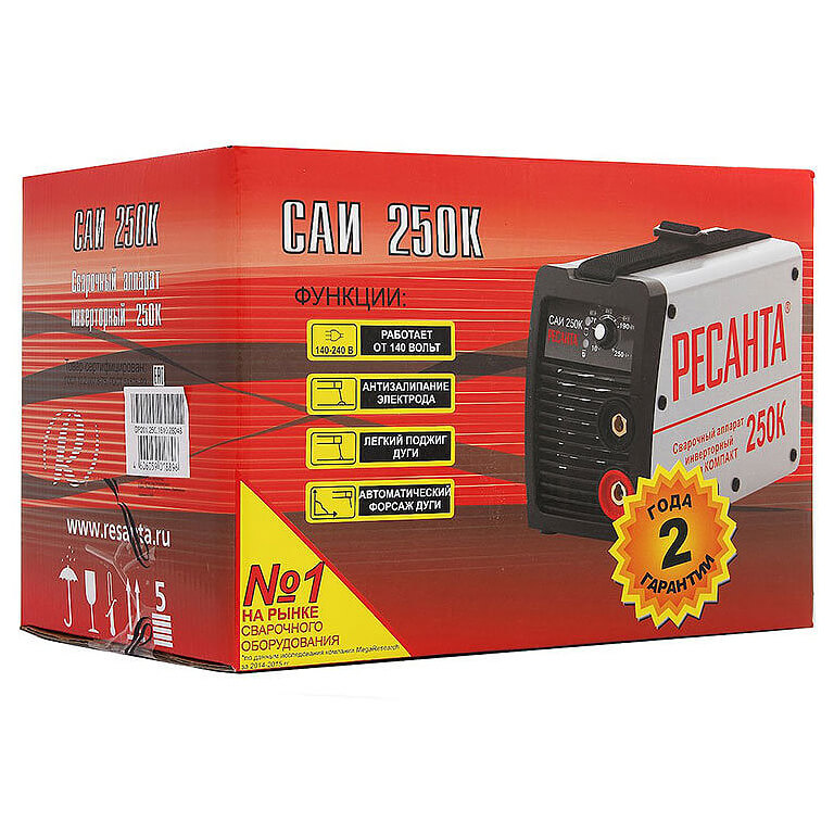 Инверторный сварочный аппарат Ресанта САИ-250К серии "Компакт" предназначен для ручной дуговой сварки постоянным током (MMA), электродами диаметром до 6 мм.