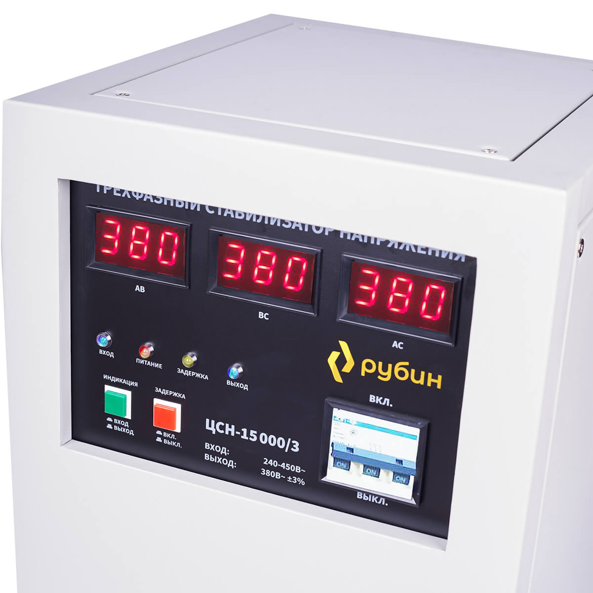 Трехфазный стабилизатор напряжения Рубин ЦСН-15000/3 предназначен для защиты от скачков и просадок напряжения в бытовых и промышленных трехфазных электросетях 380В. Основная область применения этого стабилизатора - загородное жильё, офисные и промышленные объекты с трехфазным подключением.